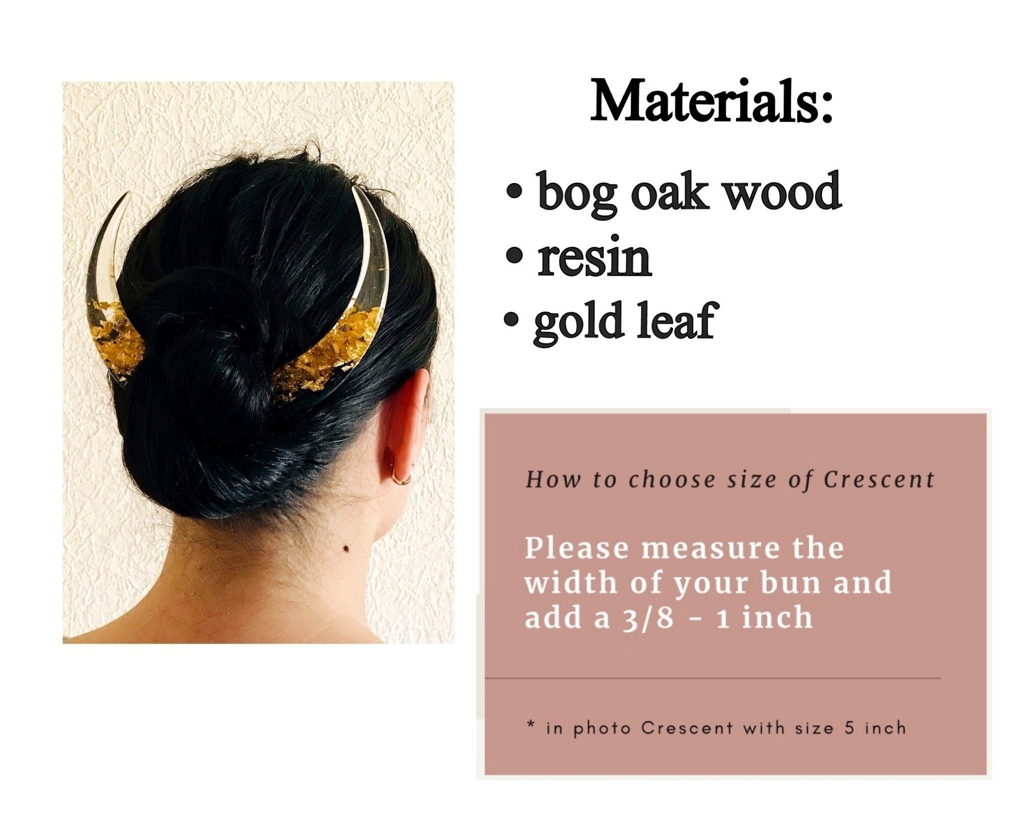 Crescent Moon Hair Stick With Black Oak Resin And Gold Foil Etsy
